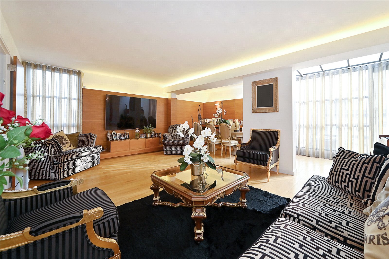 The apartment features direct access to a a large south facing communal roof terrace, lift and day-porterage.