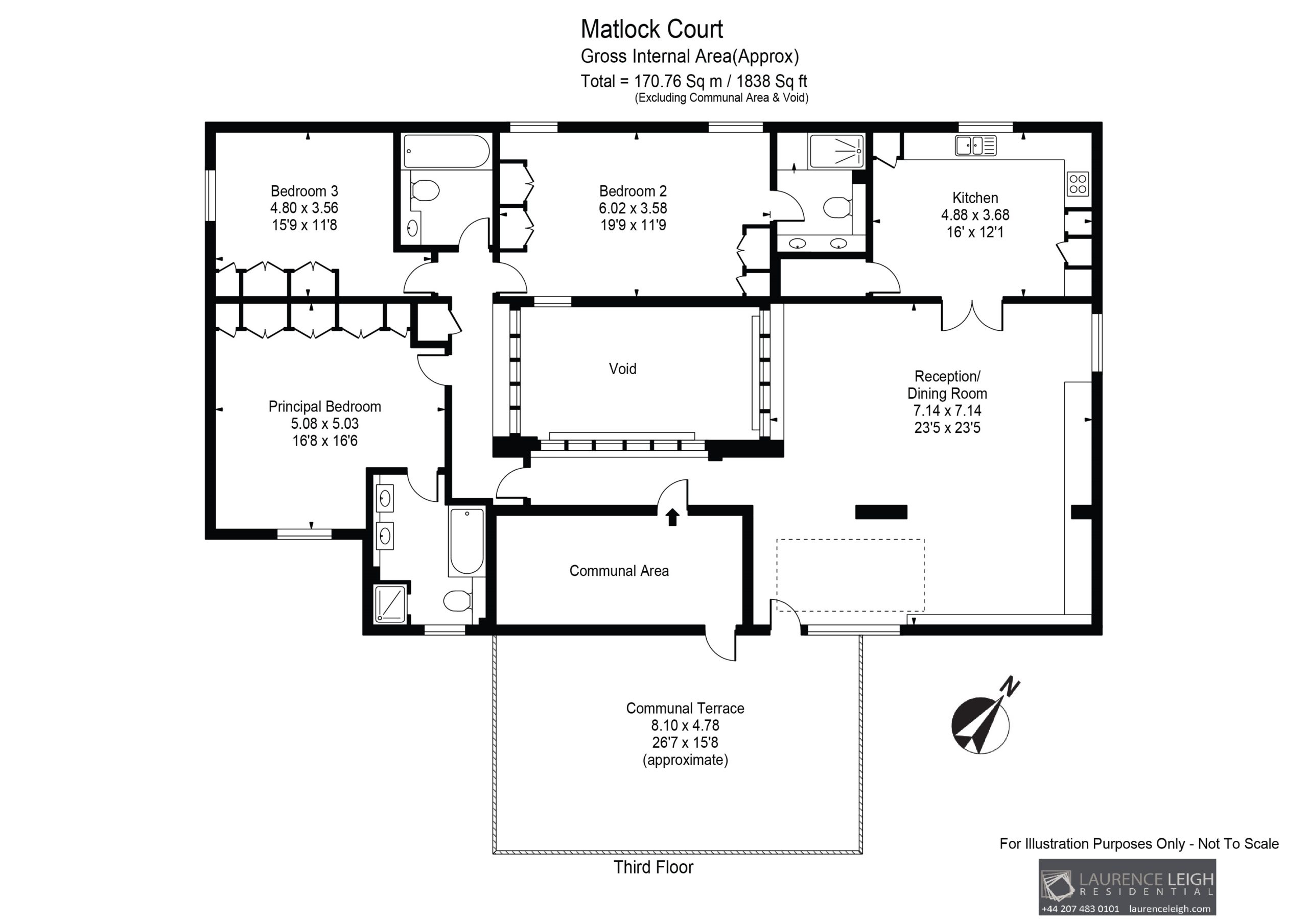 A fabulous PENTHOUSE apartment arranged over 1,828sqft (170.75sqm) and occupying the whole of the top floor of this small modern purpose built block. The apartment features 3 double bedrooms and benefits from direct access to a large south east facing communal roof