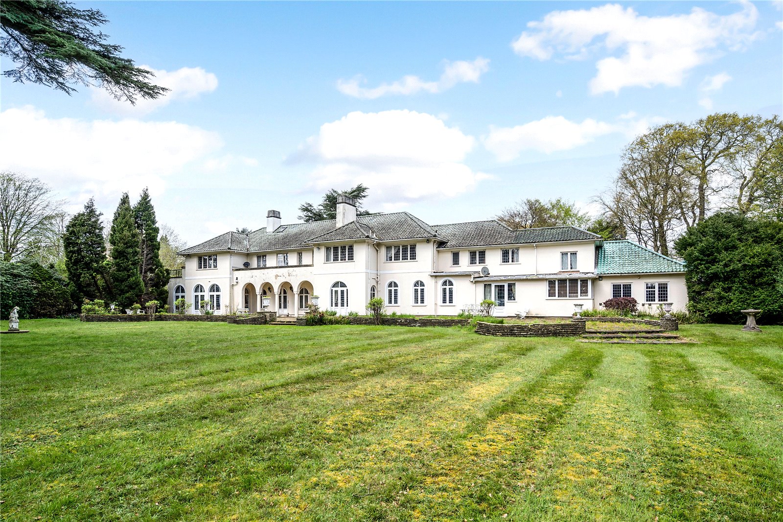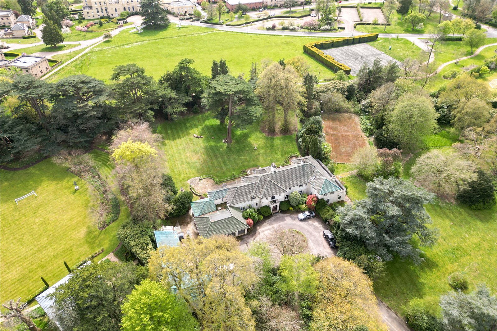 Discreetly situated behind security gates and set 120m back from the road, a unique opportunity to purchase this ‘trophy’ home – a magnificent estate with an unmodernised Manor House set in 6.7 acres of private grounds and gardens.